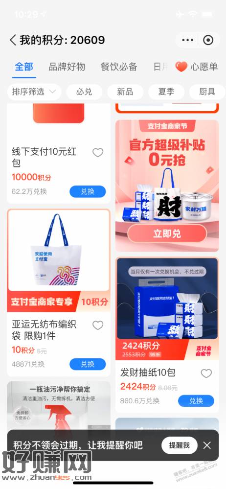 [ 支付宝 ]商家专享可以10积分兑编织袋