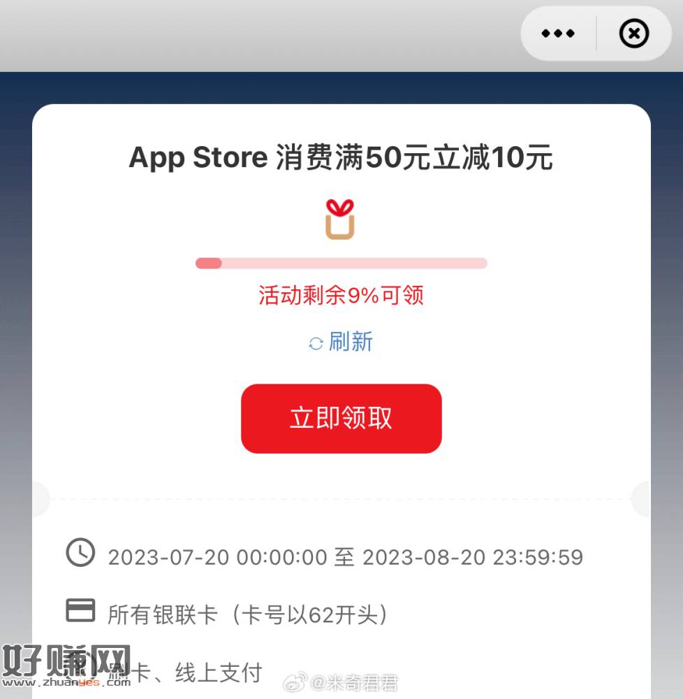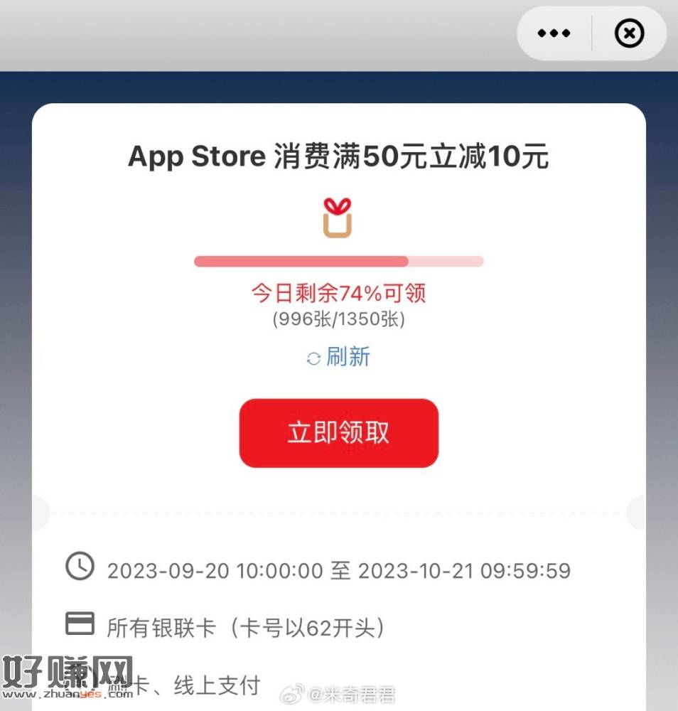 App Store 50-10券又来啦 薅它 云闪付 X App Store 支付优惠