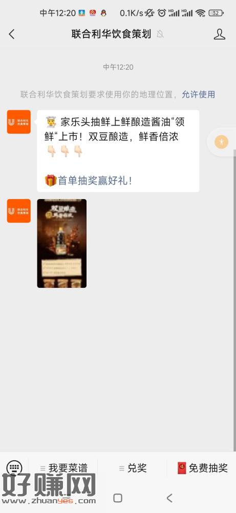 联合利华饮食策划公众号,右下角免费抽奖,前段时间有做过扫码活动的应该都能抽