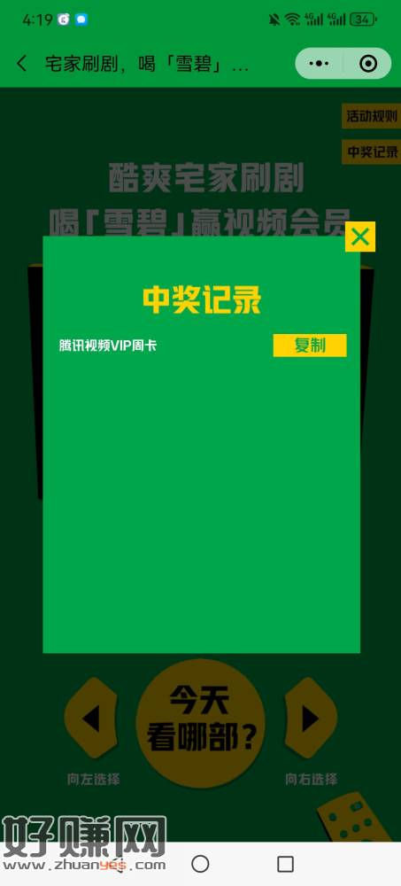 小程序可口可乐吧,看图去抽腾讯视频周卡,我刚才中了一个。你们