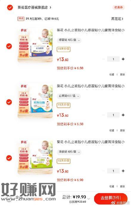 葵花 小儿止咳贴/感冒贴/腹痛贴/止泻贴/消食贴4片