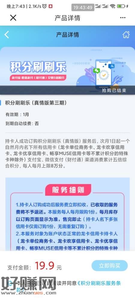 上个月买过建行积分刷刷乐的 这月可以刷了 zfb vx 刷1