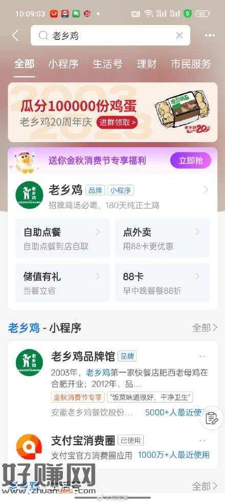 支付宝搜老乡鸡,横幅进群领鸡蛋券,八个蛋,需要到店