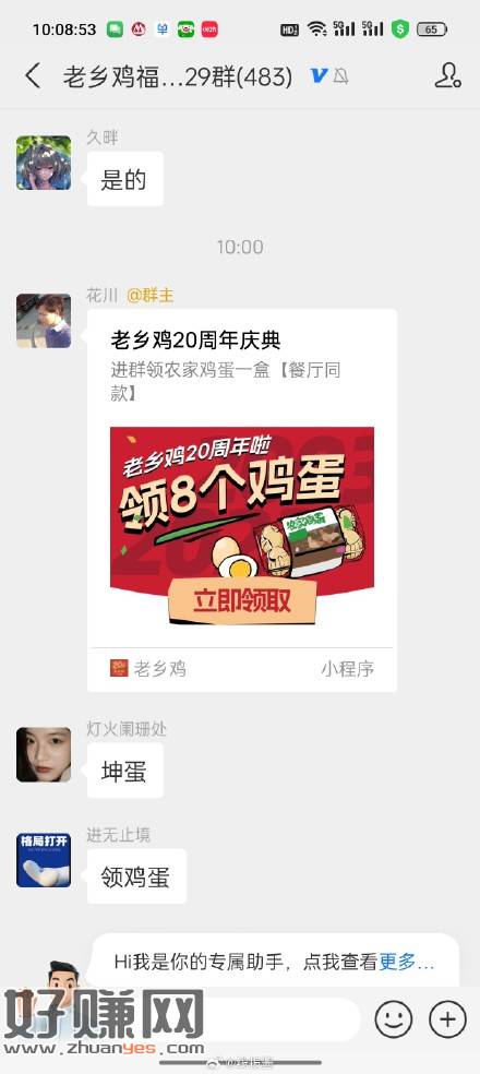 支付宝搜老乡鸡,横幅进群领鸡蛋券,八个蛋,需要到店自提