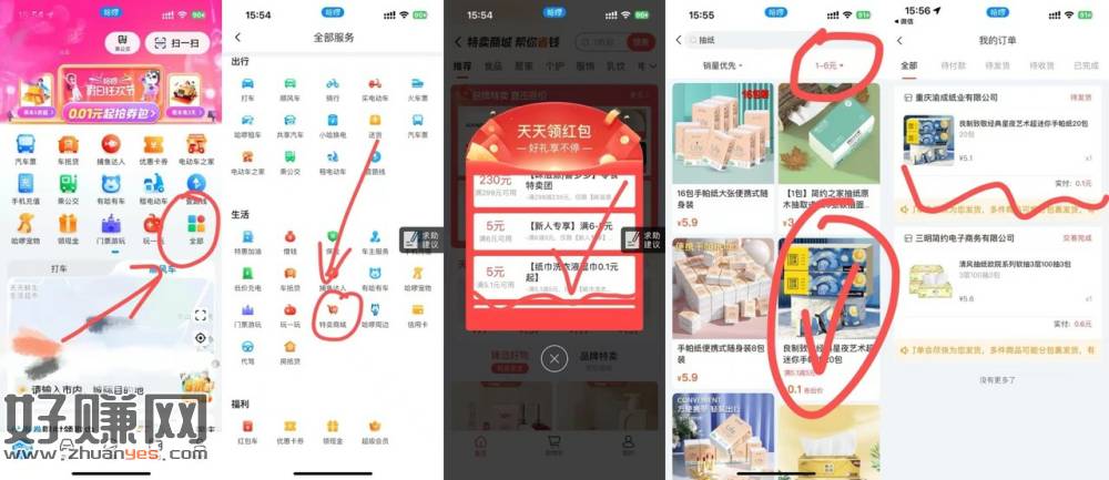 首页-全部-特卖商城,进去如有弹5-5劵,比如0.1买20包手帕纸