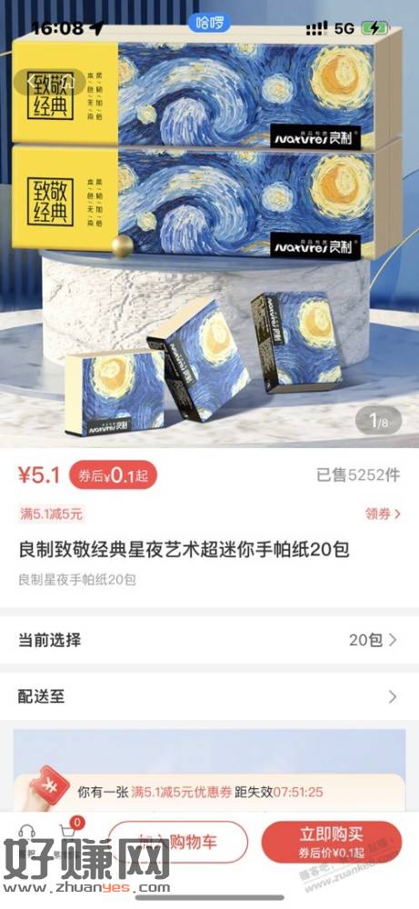 首页-全部-特卖商城,进去如有弹5-5劵,比如0.1买20包手帕纸