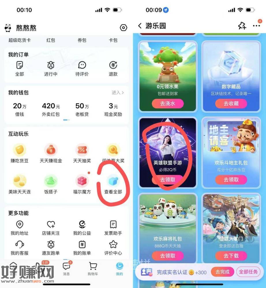 饿了么app -我的-查看全部 进去下拉 找到 英雄联盟