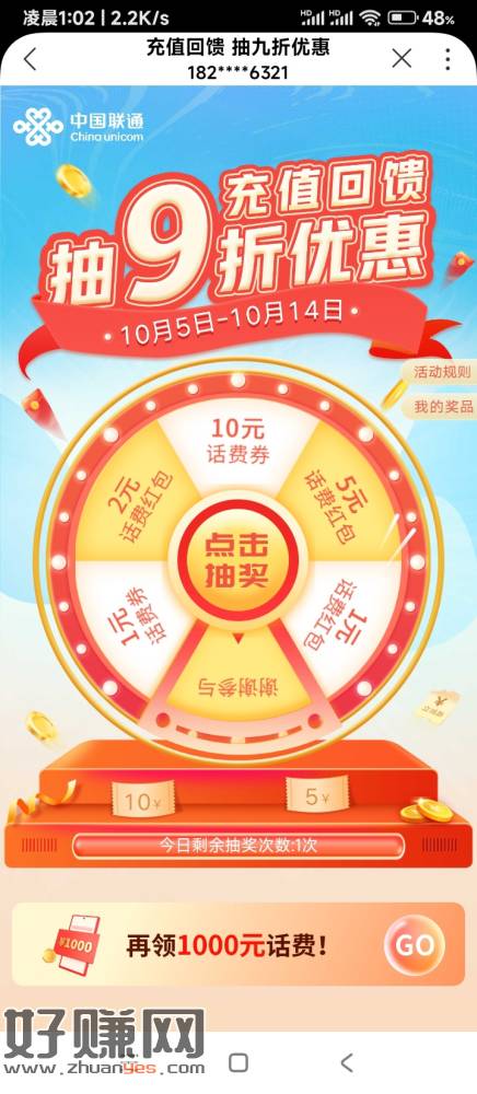 中国联通APP抽奖,持续10天,今天没中的明天零点去