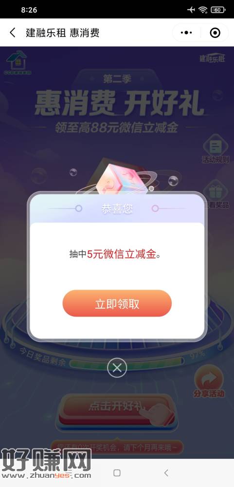 支付宝理财收月礼的活动,如果出现还可以领68.8的活动,可以