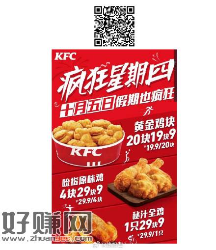 今日肯德基疯狂星期四,扫码点餐再便宜几毛钱