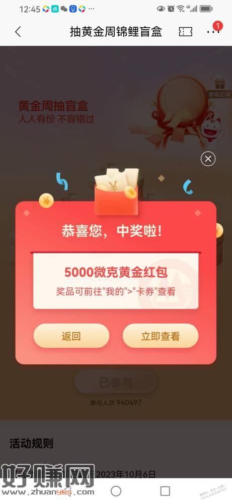 App搜 十一狂欢周 抽盲盒,大概率5000微克黄金(价值2块多)。