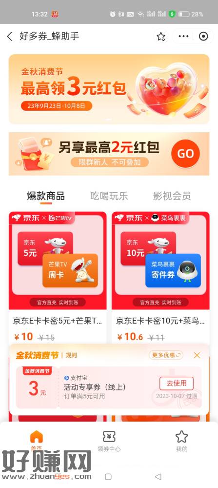 支付宝搜闲鱼,打开小程序有小红包,里面抽奖也有概率中0.5
