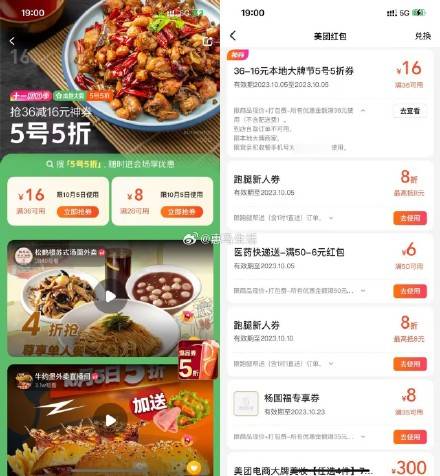 美团本地大牌节领36减16元券,券仅限10月5日当天使用