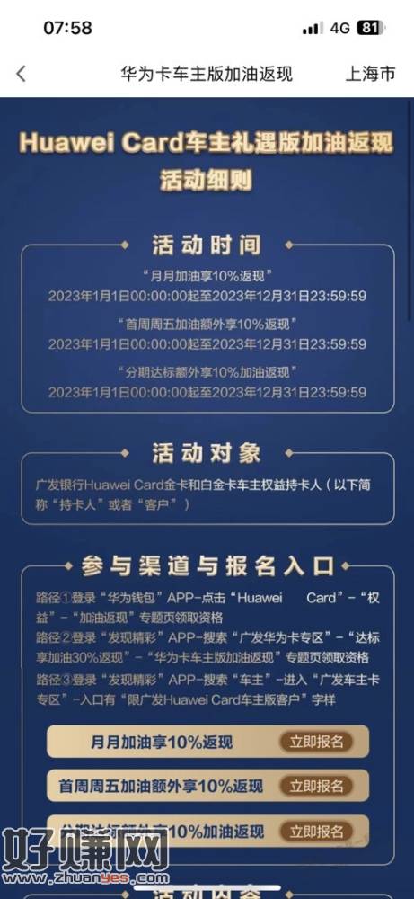 广发精英白和华为车主礼遇卡可同时参与,没玩的可以申请下,把两张卡都拿下,双重返现。