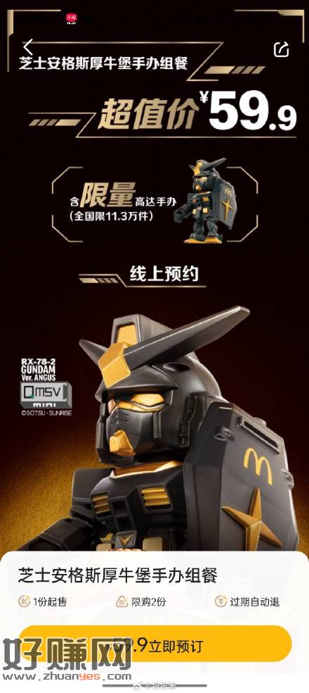 麦当劳APP麦麦商城,有汉堡送玩具,需要预约,我这