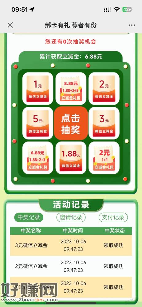 江苏中行除苏州1分钱抽奖又来了新的一期首次必中6.88