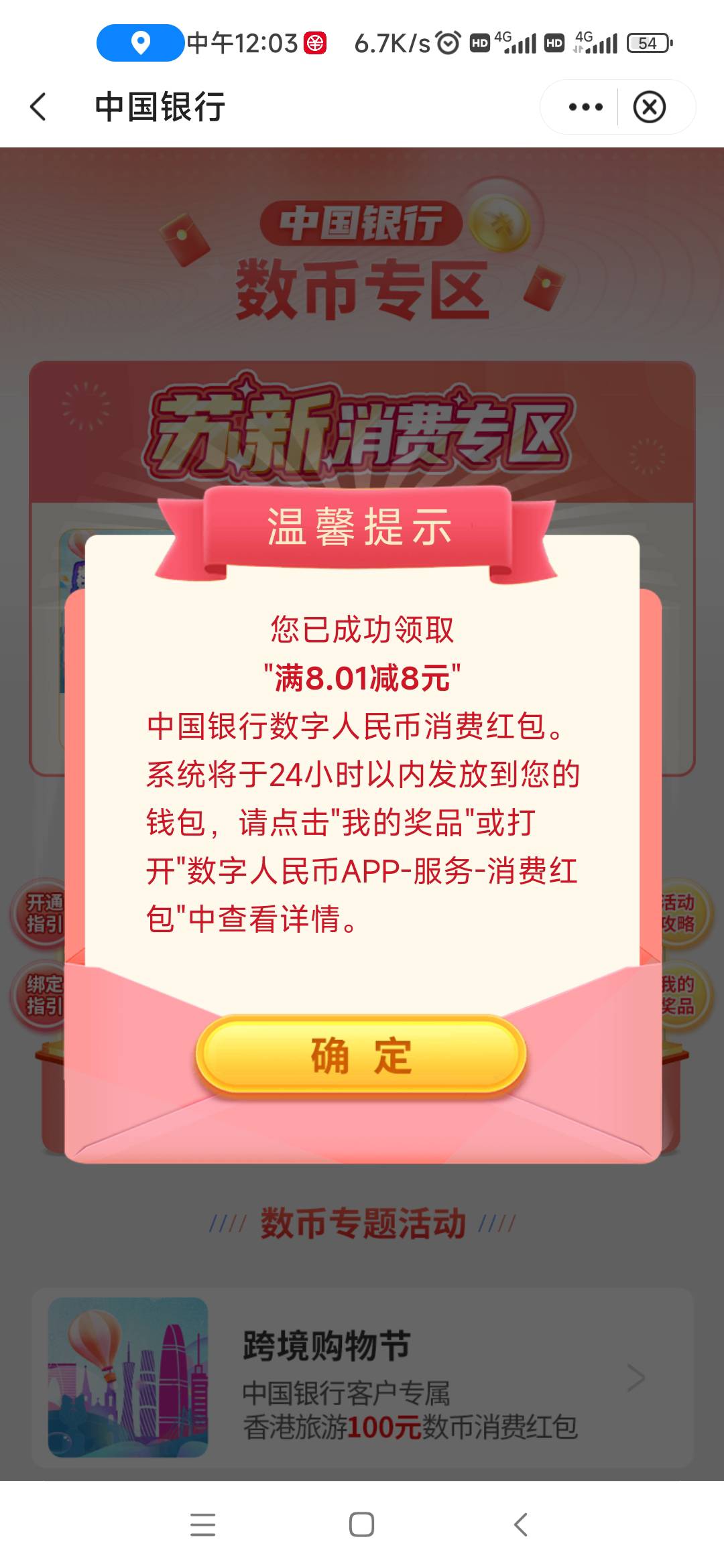 江苏中行生活专区,1分购5-10随机金额数字人民币,应该不含苏州!