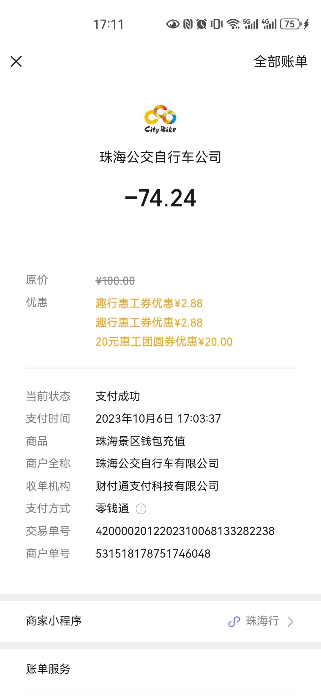 本帖最后由 卡农超管 于 2023-10-6 17:29 编辑 珠海行旅游单车小程序实名后无损T珠海卷,提现秒到