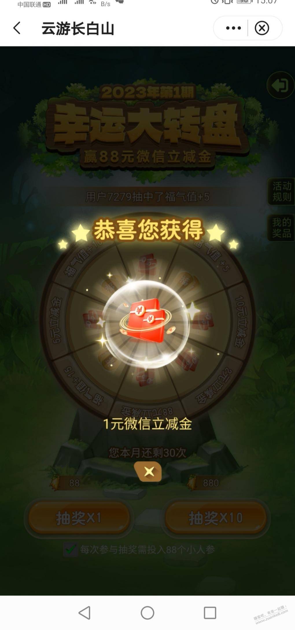 本帖最后由 卡农超管 于 2023-10-7 15:14 编辑 中行福仔云游记云游长白山,第1期幸运大转盘抽奖