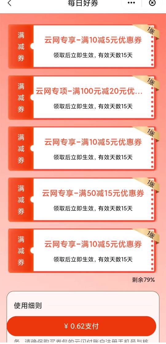 重庆云闪付用户,首页生活圈,横幅倒数第二个,0.62支付券包,100-