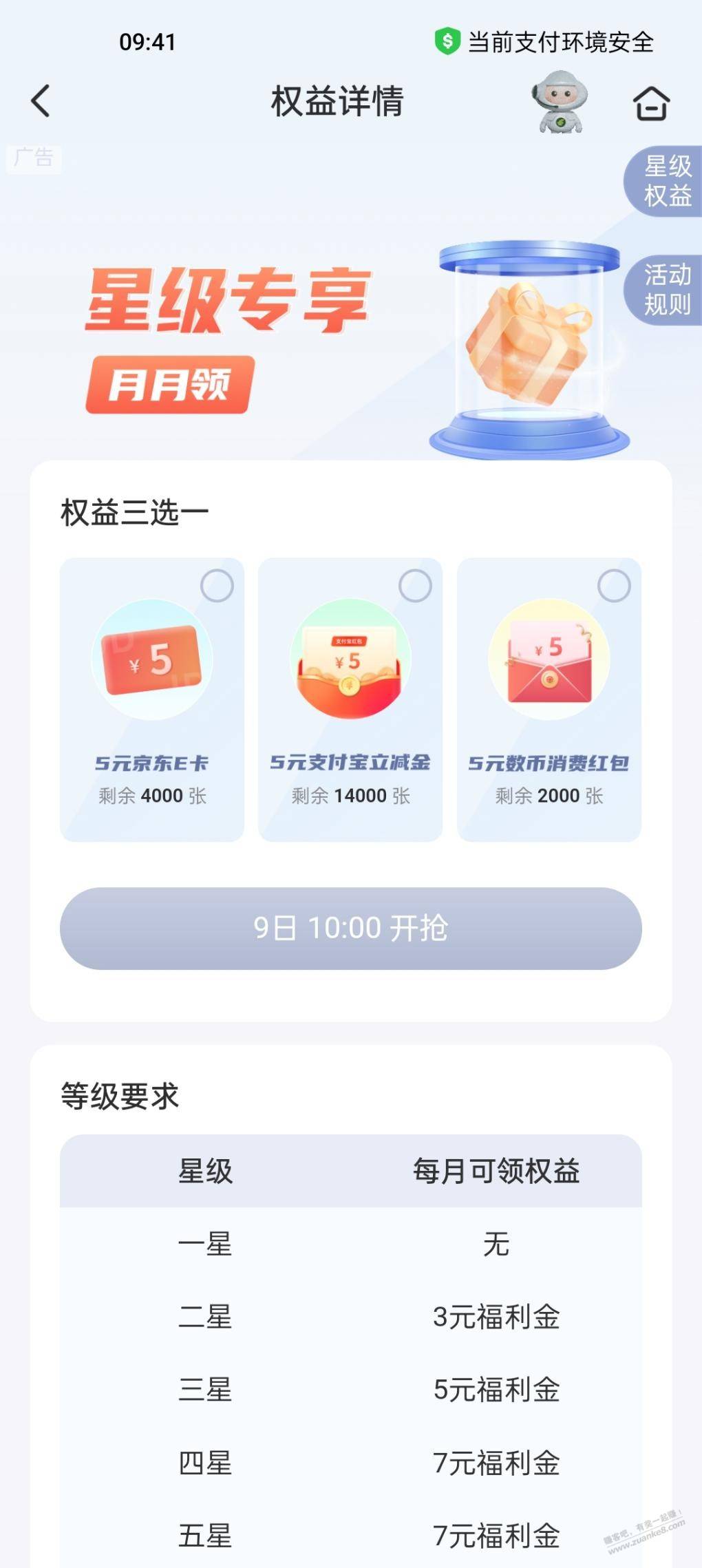本帖最后由 卡农超管 于 2023-10-8 09:50 编辑 邮储权益专区星级月月领活动,9号10点开始