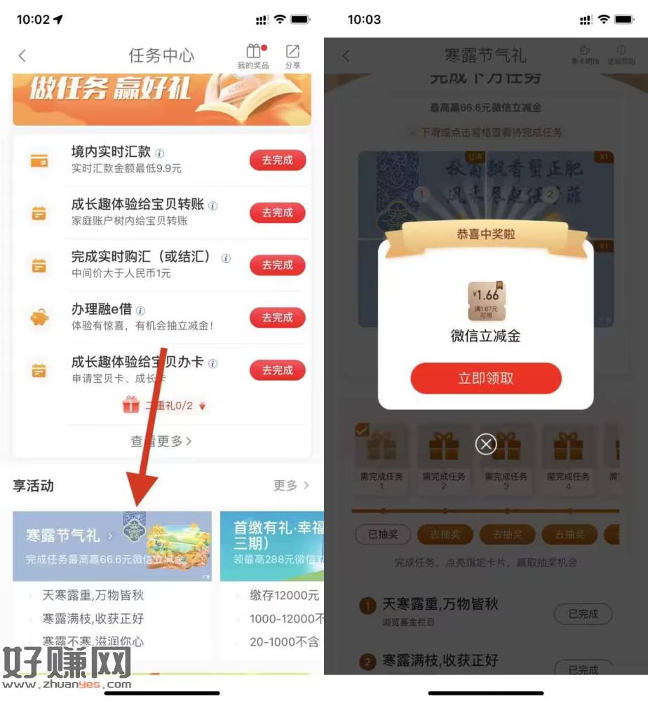 工行搜:任务中心 享活动-寒露节 刚中2立减金
