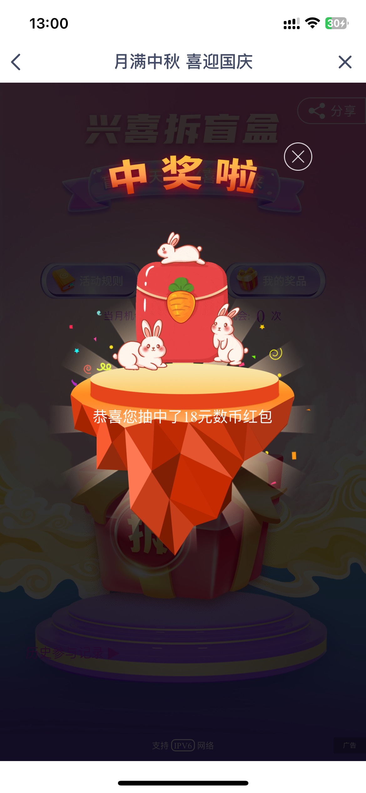 兴业昆明,中秋活动,上个月中过一次刚刚又中,有卡的去试试