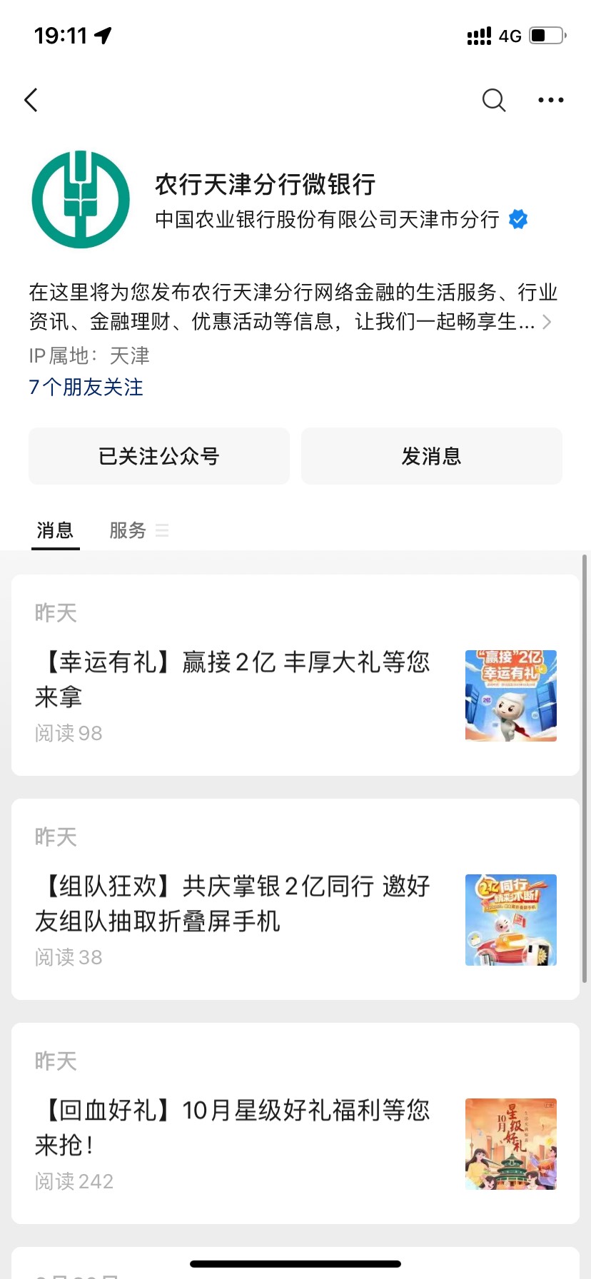 本帖最后由 卡农超管 于 2023-10-8 19:18 编辑 农行赢接2亿幸运有礼活动,入口很多公众号随便进