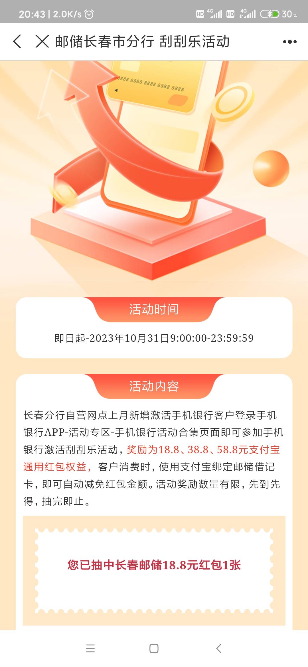 邮储长春刮刮乐活动,上月末停机可以领了,不用飞