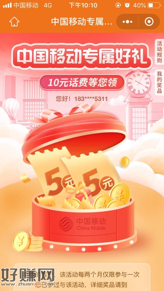 陕西移动10话费 外加50G流量
