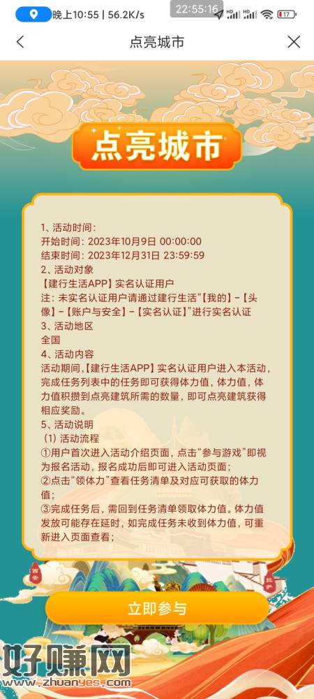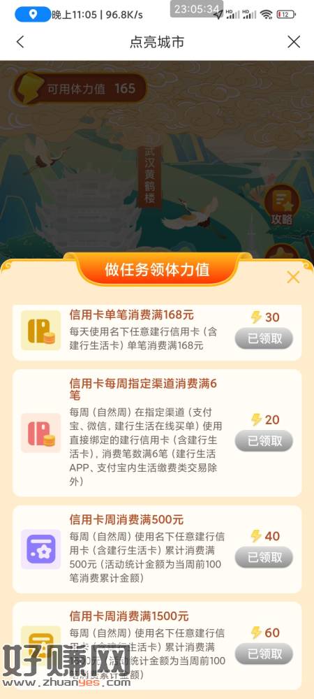 第二期建行点亮城市 藏的有点深 建行生活-金融-信用卡-中间横幅 活动0点开始 但今晚可以提前做 领先别人一周