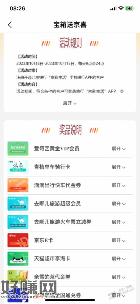 [ 北京银行 ]签到抽E卡、猫超卡、爱奇艺会员等