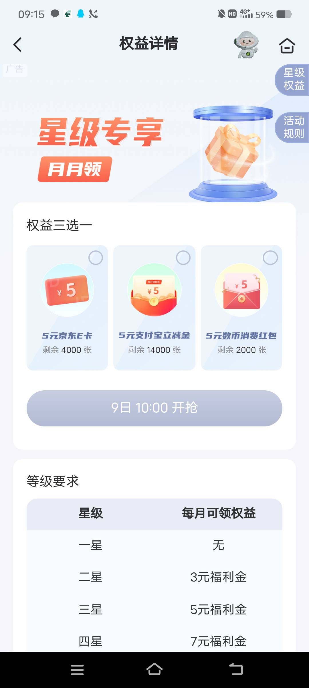 本帖最后由 卡农超管 于 2023-10-9 09:19 编辑 邮储权益中心星级专享活动,10点开抢,别忘记了哦