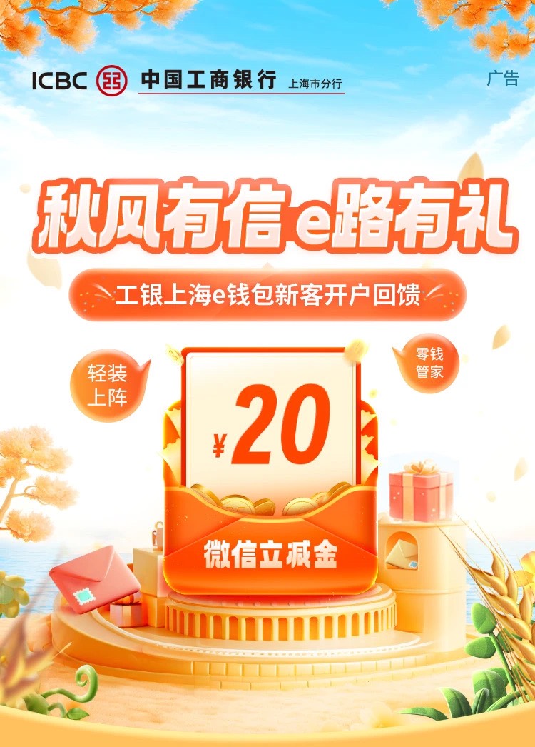 工银上海e钱包新客开户送20立减金
