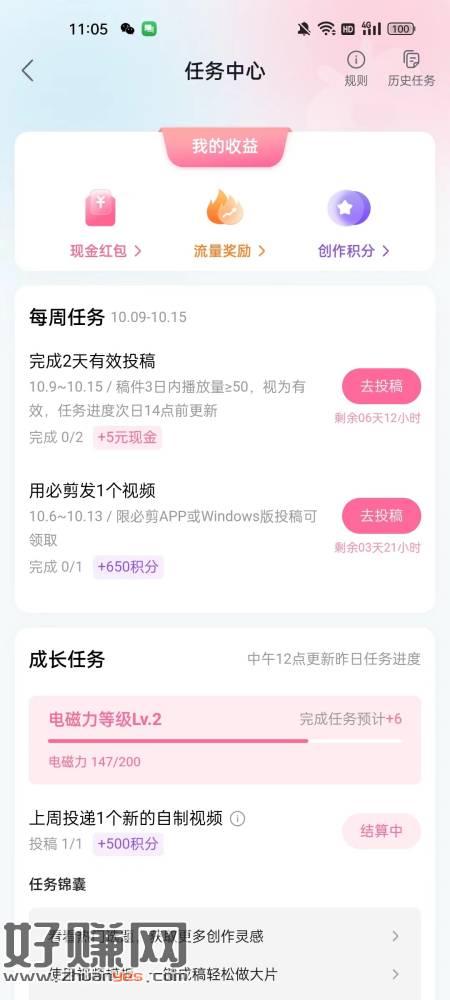 b站部分人有投稿现金任务,我基本每周有两次