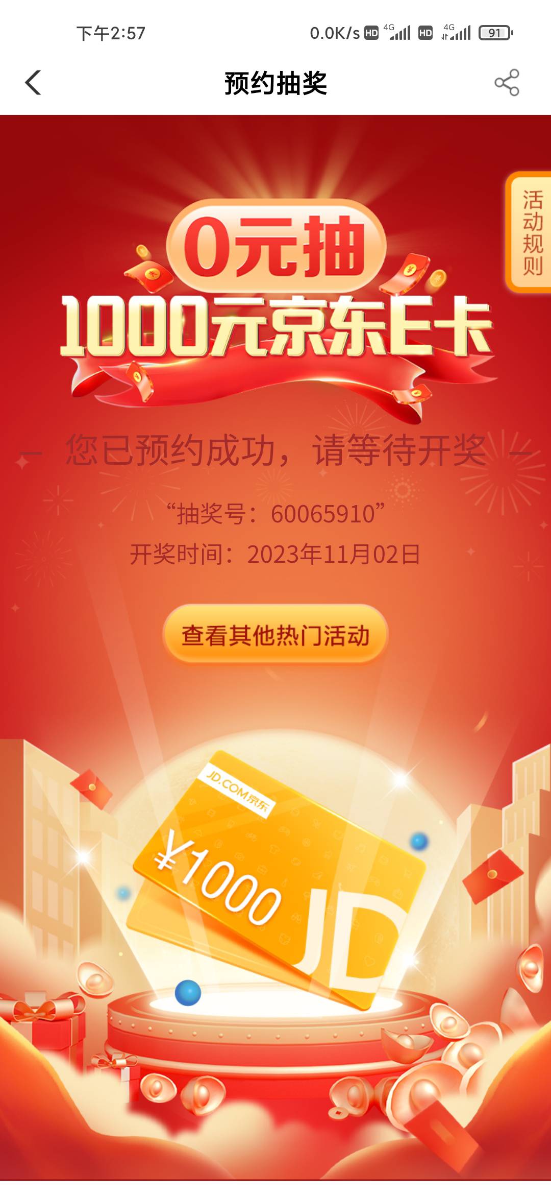本帖最后由 卡农超管 于 2023-10-9 15:04 编辑 农行宁波城市专区预约抽奖活动,11月2号9点开奖