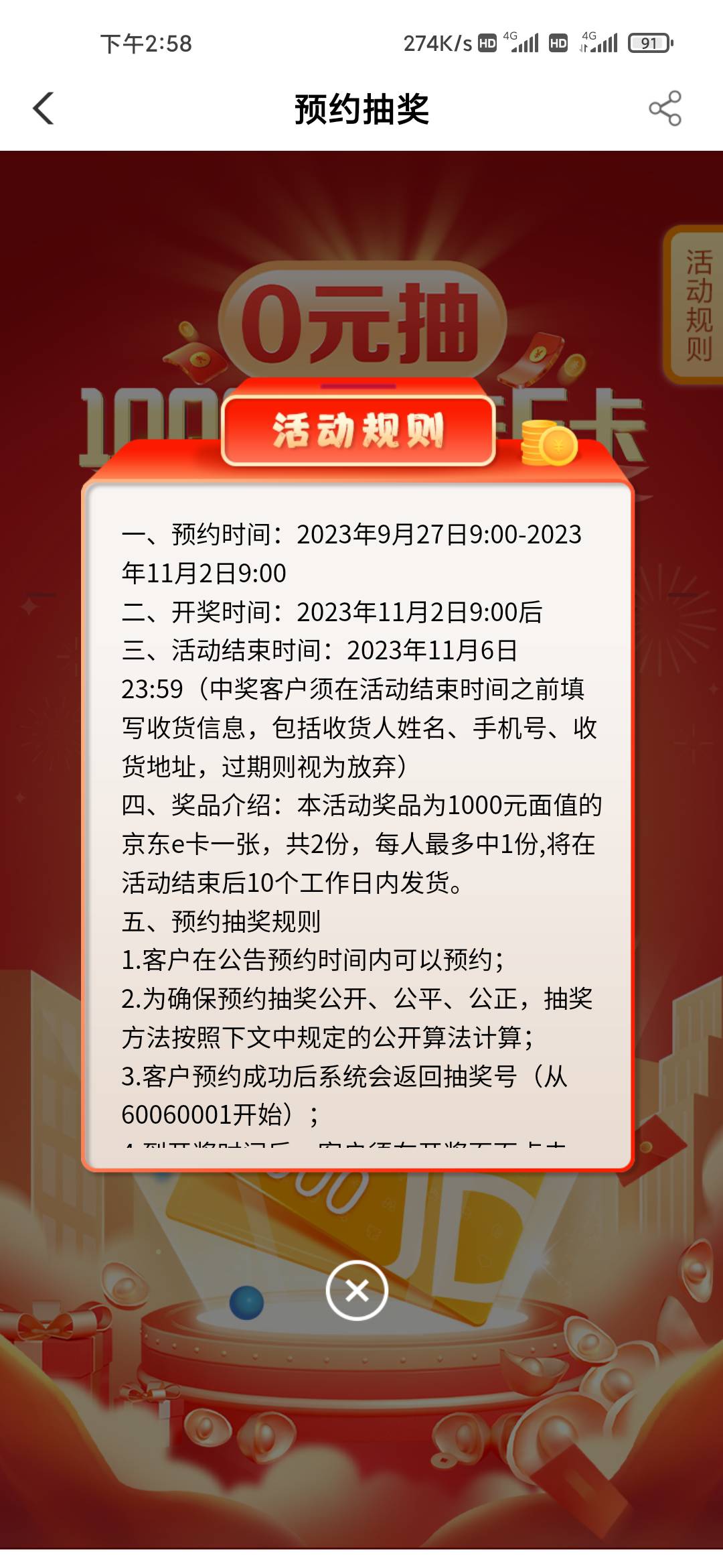 农行宁波城市专区预约抽奖活动,11月2号9点开奖
