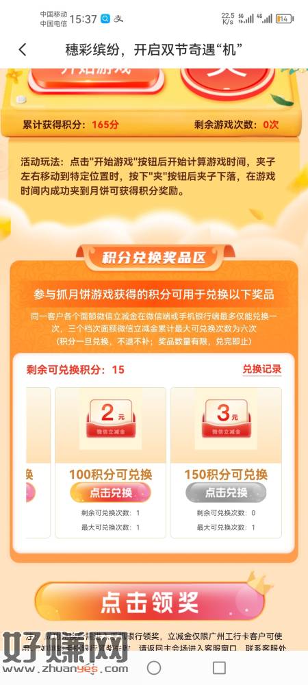 广东工行税彩缤纷玩几局游戏。兑换三元立减金。