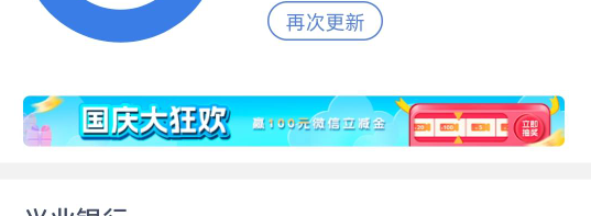 本帖最后由 卡农超管 于 2023-10-9 16:31 编辑 兴业银行app-账户查询-账户总览-小横幅国庆大狂欢。点进去抽奖,可抽三次,最高100立减金