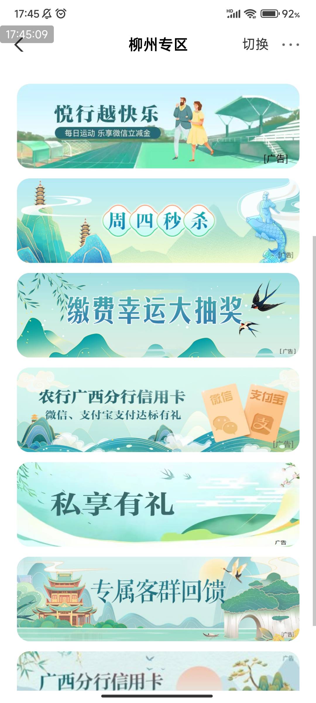本帖最后由 卡农超管 于 2023-10-9 17:49 编辑 农行柳州城市专区缴费幸运大抽奖活动,不用飞