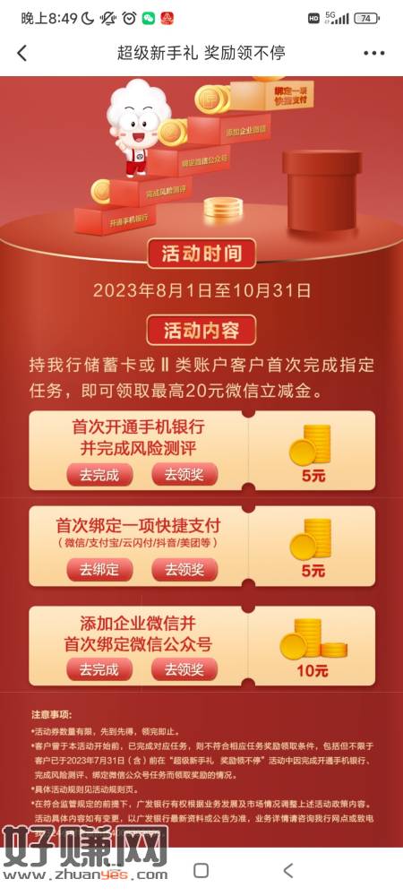 广发银行,原来活动的全领过了,这次我又领了10毛,新手礼第三