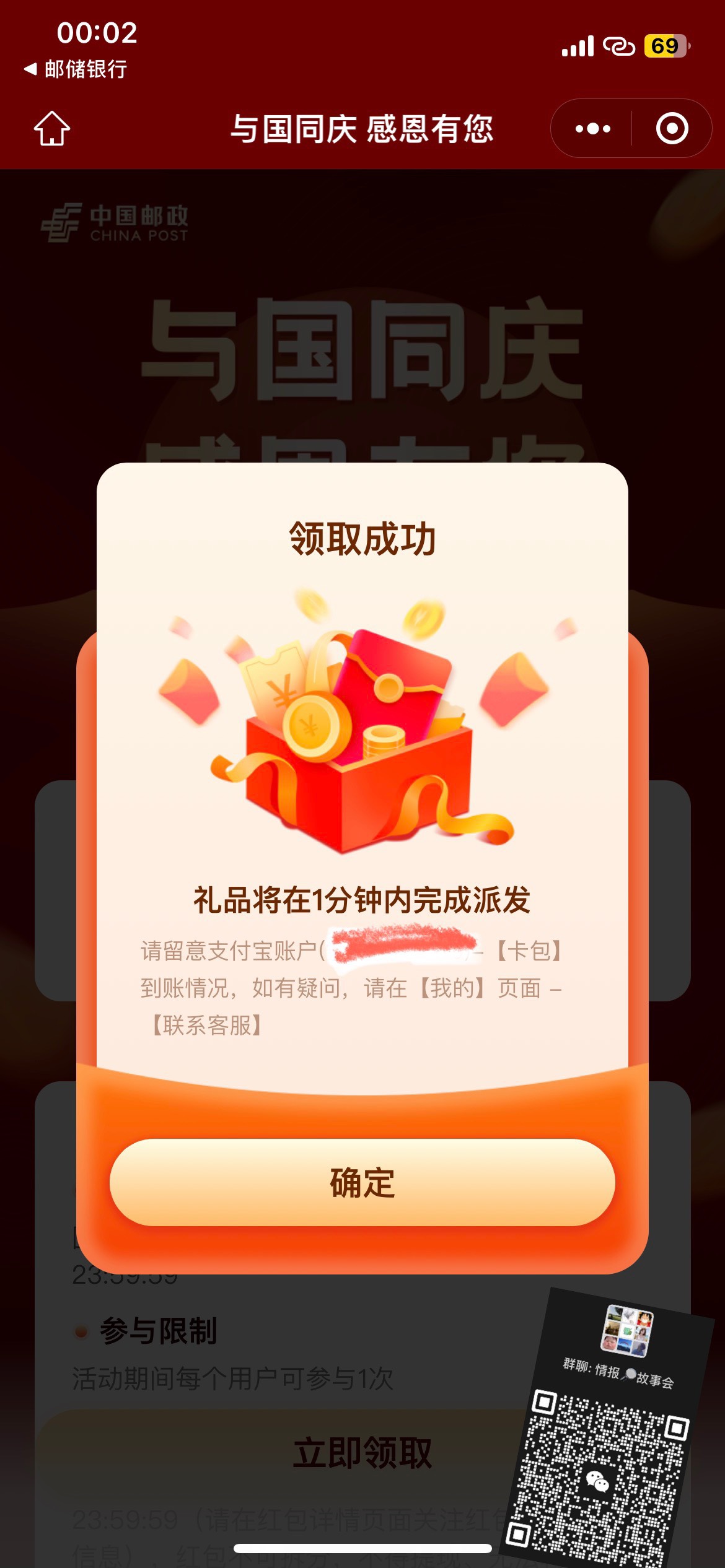 本帖最后由 卡农超管 于 2023-10-10 00:46 编辑 邮储app搜移动商圈地址改吉林,横幅与国同庆感恩有您活动,领3支付宝通用券