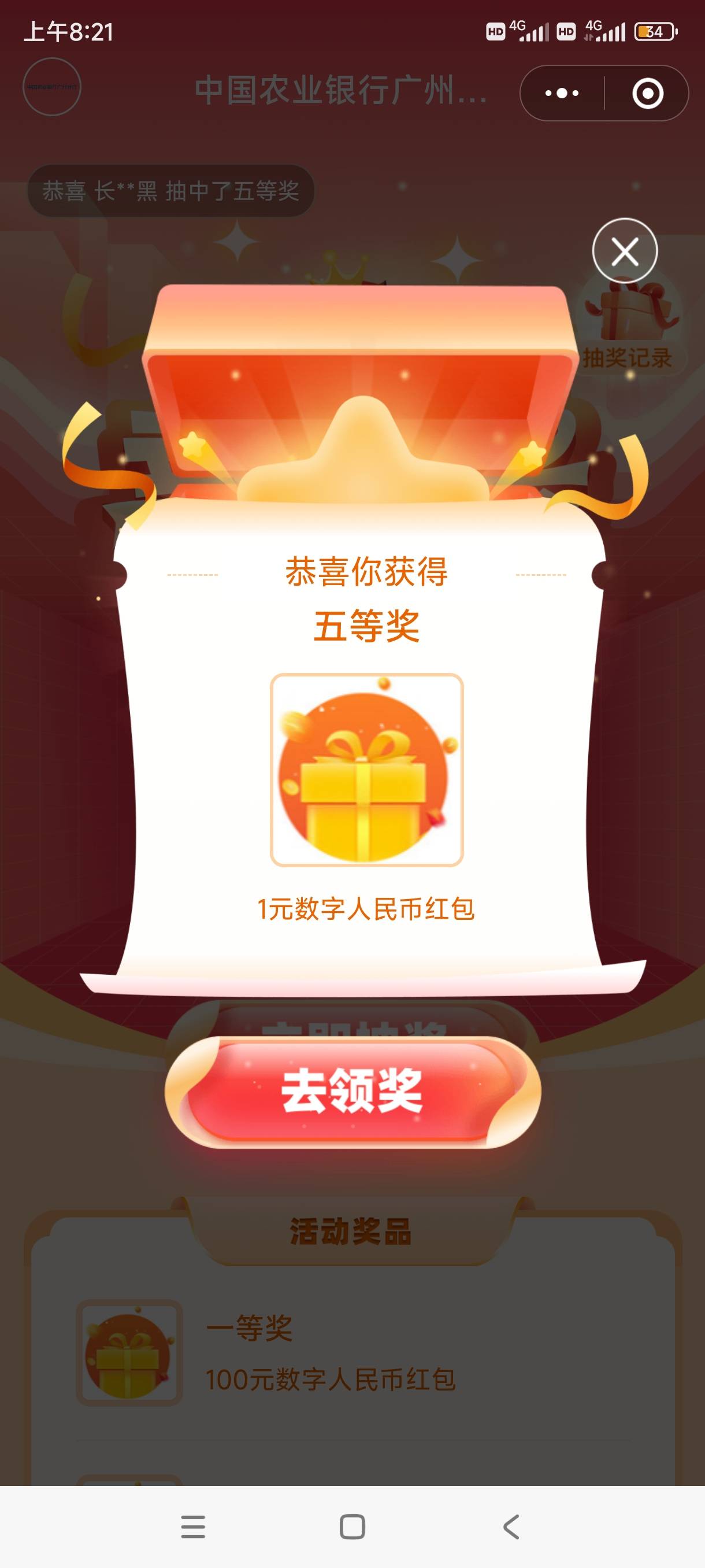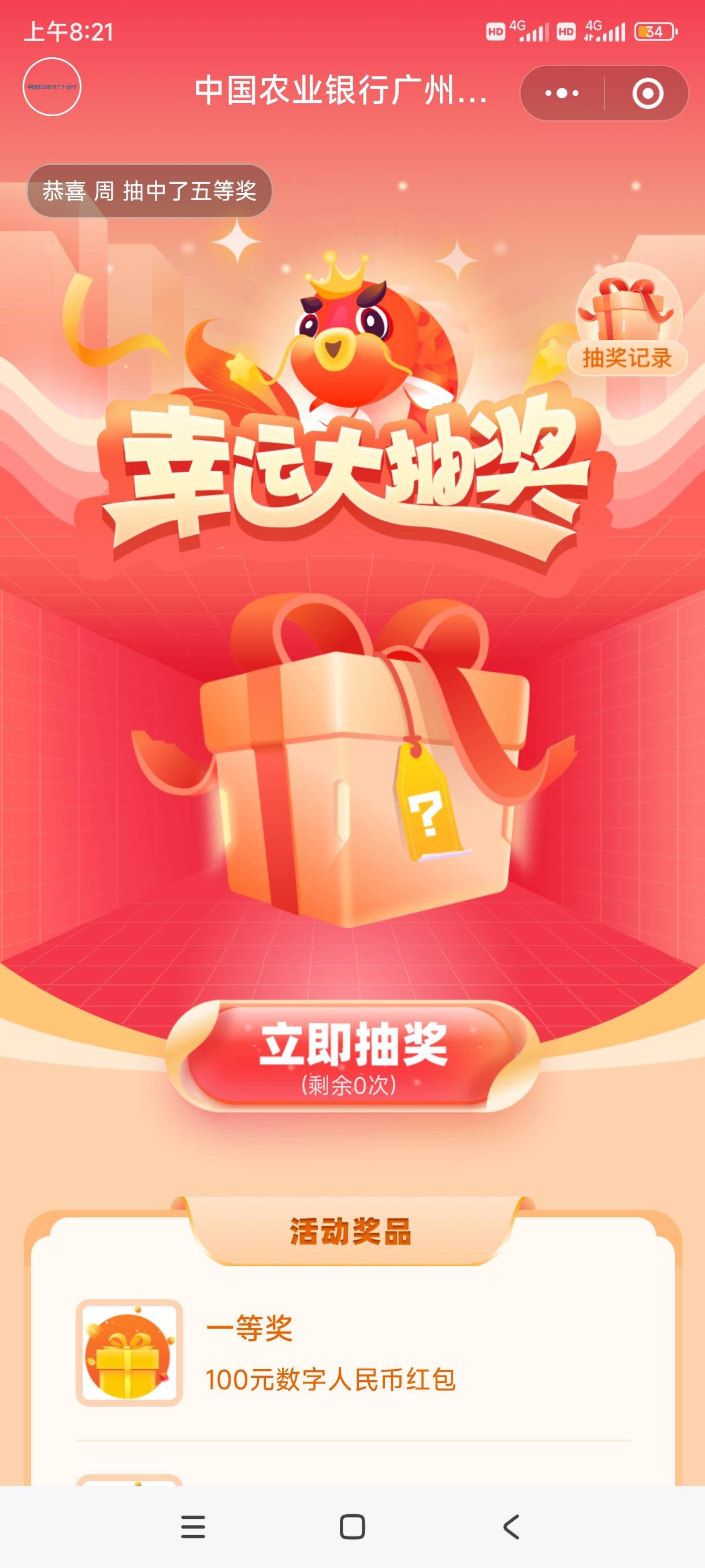 大清毛,今日首发,老农广州分行公众号推文进去抽奖,人人一毛