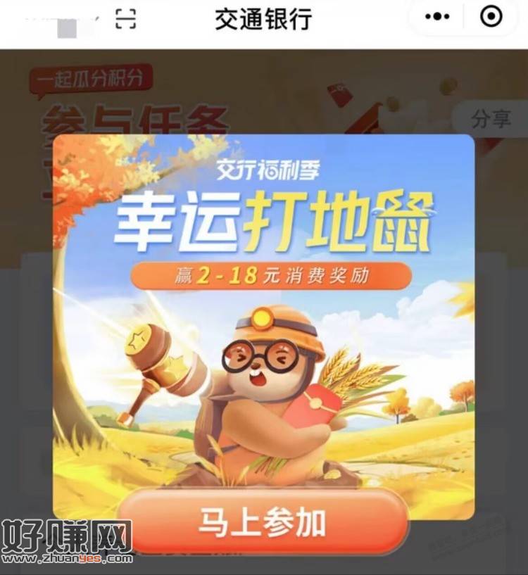 交行 Vx小程序 打地鼠可得 2吱付贴jin券