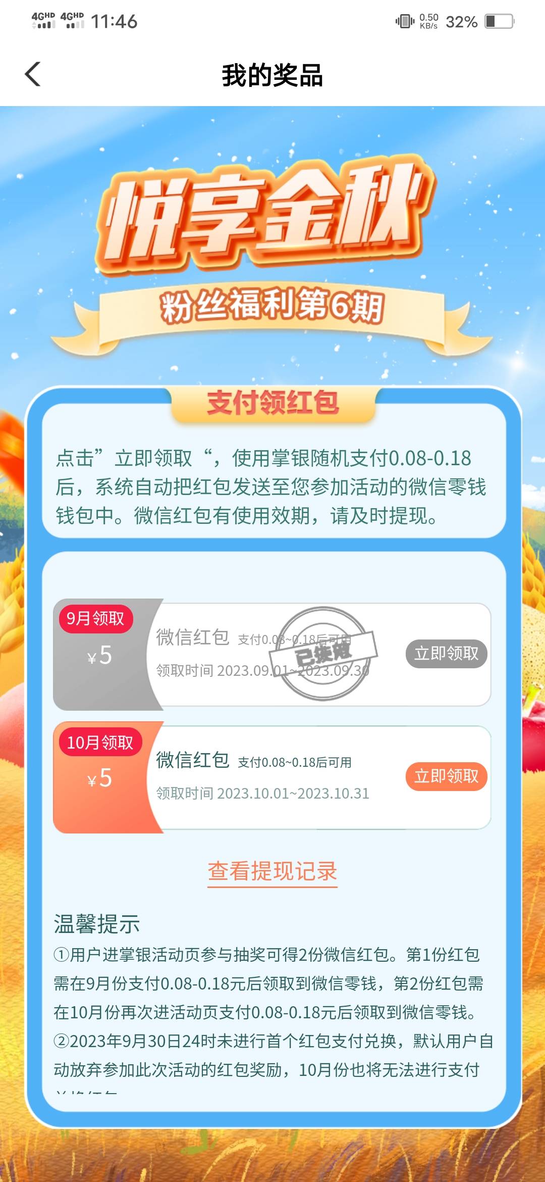 农行北京城市专区横幅悦享金秋活动,领取10月份奖品