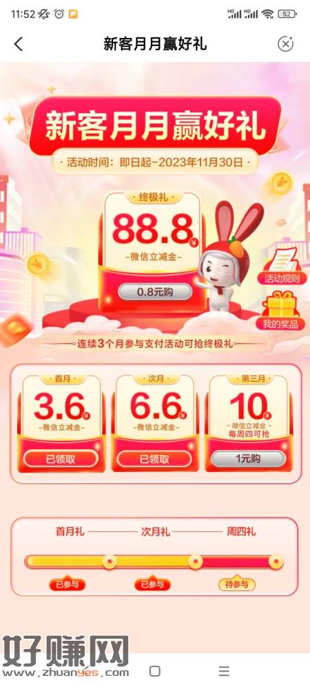 农行湖北 武汉专区-最上面羊毛口袋-新客月月礼。没参加的上。。。