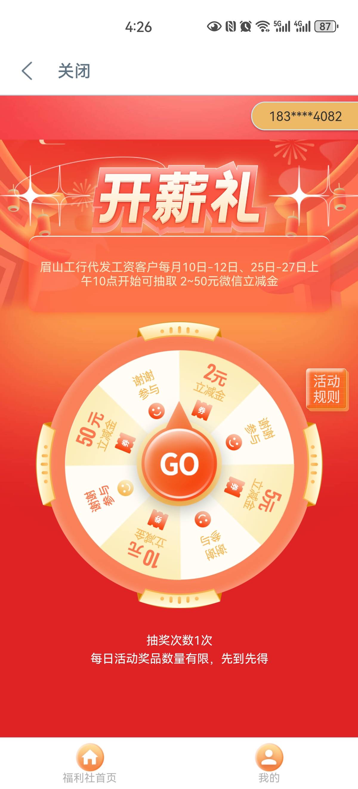 工行眉山开薪礼,代发工资客户抽取立减金,看图进去搜眉山再搜广安