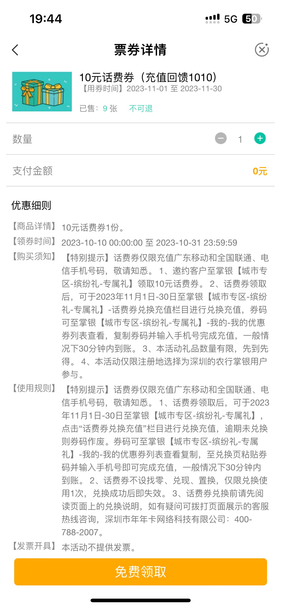 农行深圳城市专区缤纷礼-专属礼-10月礼遇活动,领取话费下个月使用