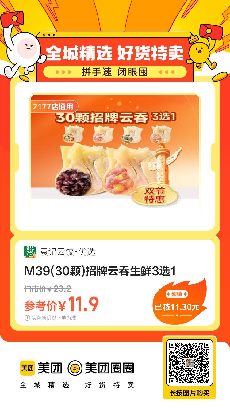 11.9,袁记云饺|M39(30颗)招牌云吞生鲜3选1