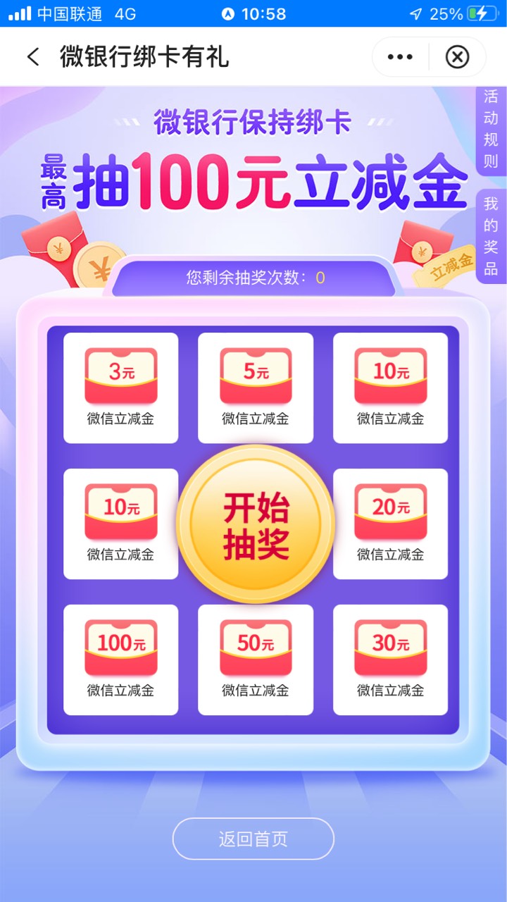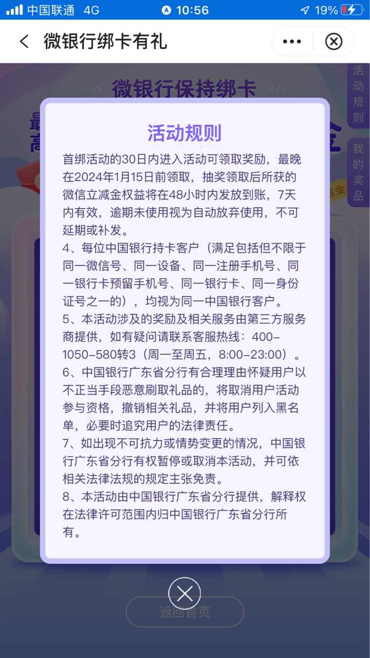 中行广东保持微银行绑卡有礼抽奖,首绑应该大家都没了,最低3,快去